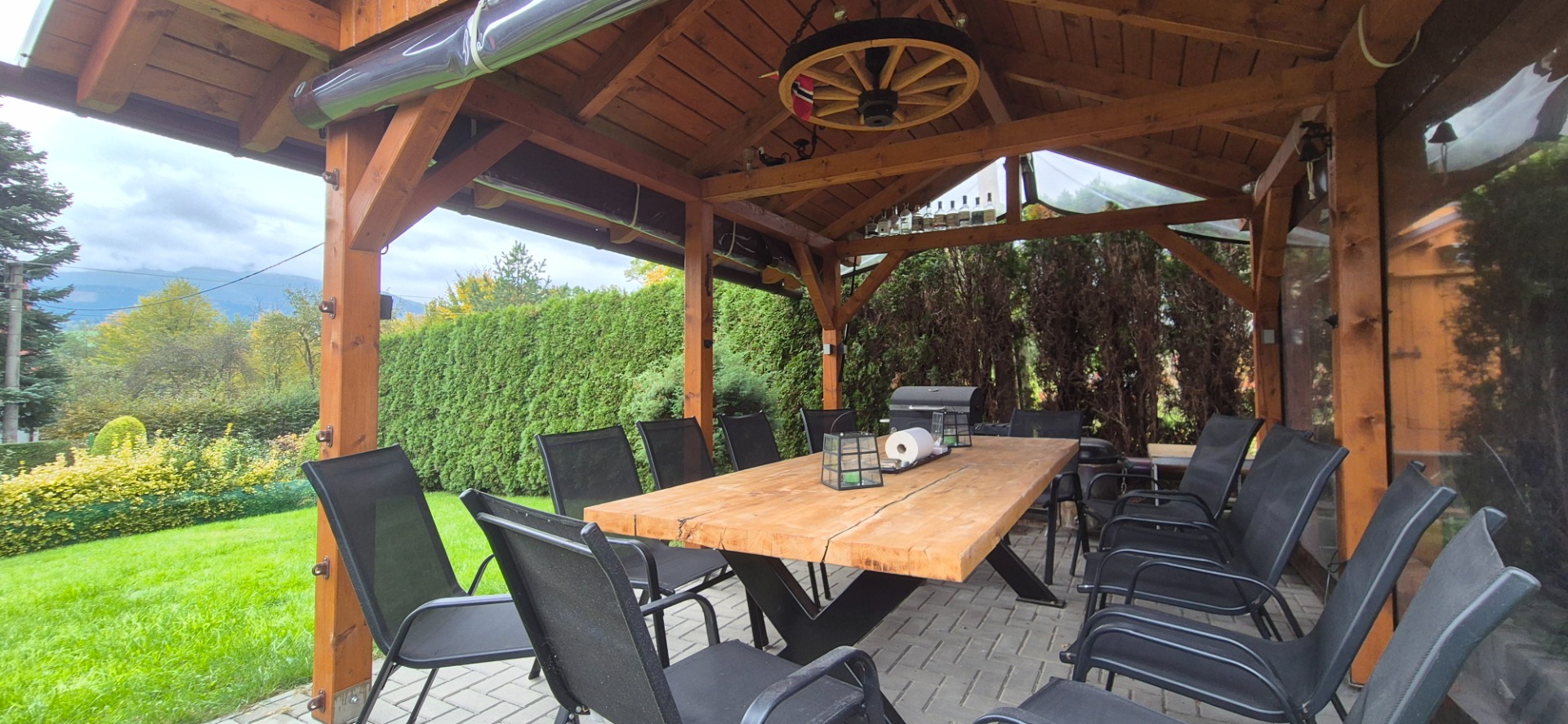 V případě nepříznivého počasí lze celé posezení uzavřít plachtovým systémem, takže si pohodlí užijete i za horších podmínek.